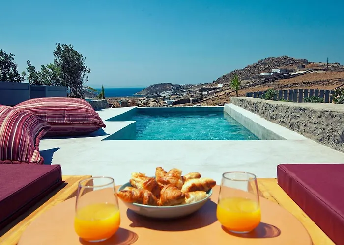 Die 2-Zimmer- Piccolo Mondo With Private Pool And Sea View liegt in circa 10 Autominuten Entfernung von Strand von Ftelia und bietet seinen Gästen die Möglichkeit, sich in der Umgebung beim Schnorcheln, Tauchen und Wandern zu vergnügen. Diese Villa liegt etwa 15 km vom Flughafen Mykonos entfernt und bietet Autos für zusätzlichen Spaß.